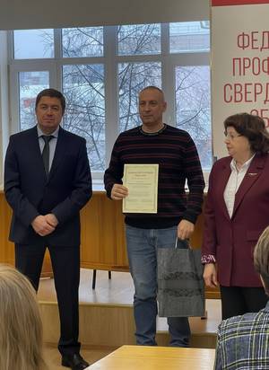 Сотрудник "Газпром газораспределение Екатеринбург" отмечен благодарственным письмом Сврдловского областного профсоюза